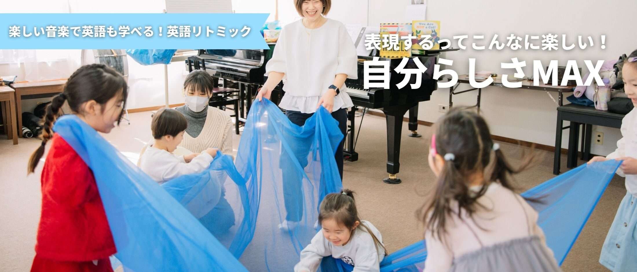 体を動かしながら音楽を学ぶリトミックレッスンに、英語のうたや読み聞かせを交えて英語で進行するプログラムです。