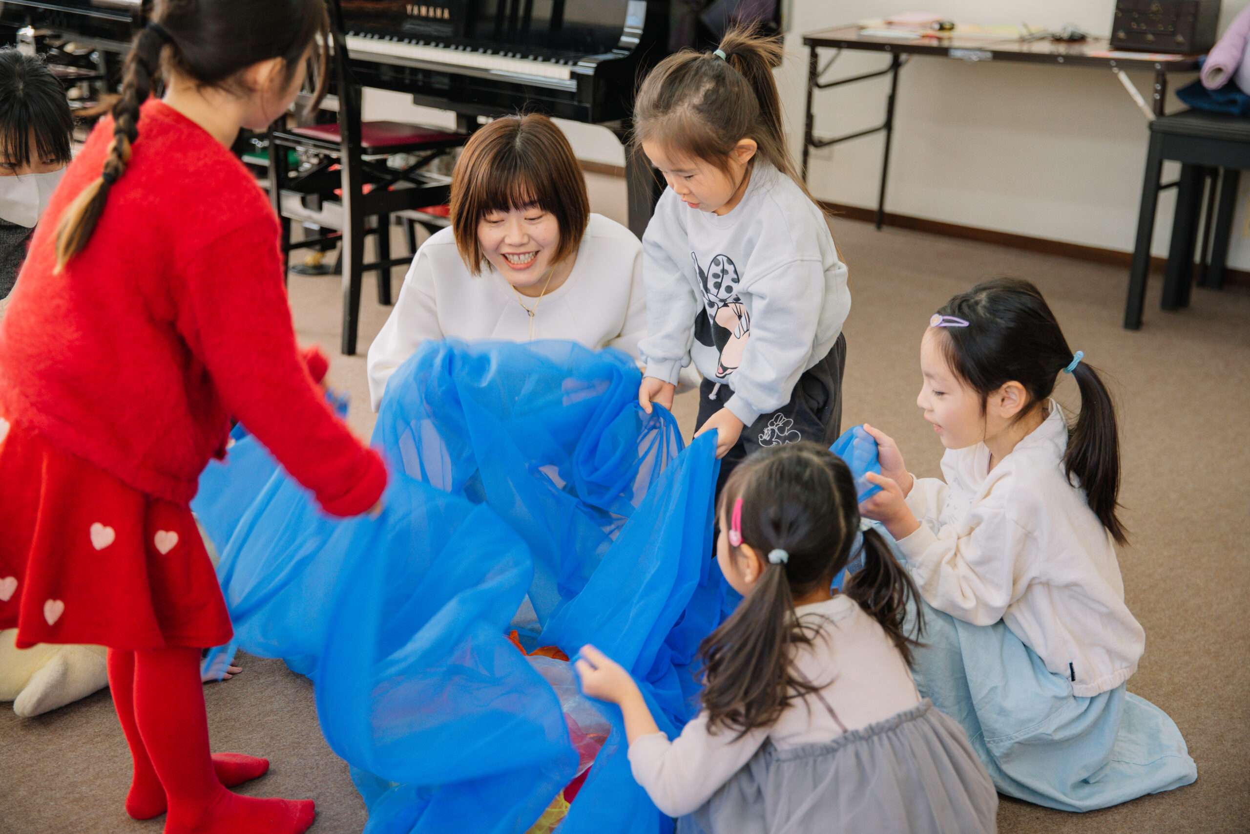 子どもの好きなことを発見するきっかけをいただきました。娘の成長を目の前で見ることができてすごくよかったです!もっと早くちひろ先生に出会いたかったです!レッスンがない日でも、家で子どもがレッスンであったことをお話したり、タオルを振って一人リトミックをしたりしています♪