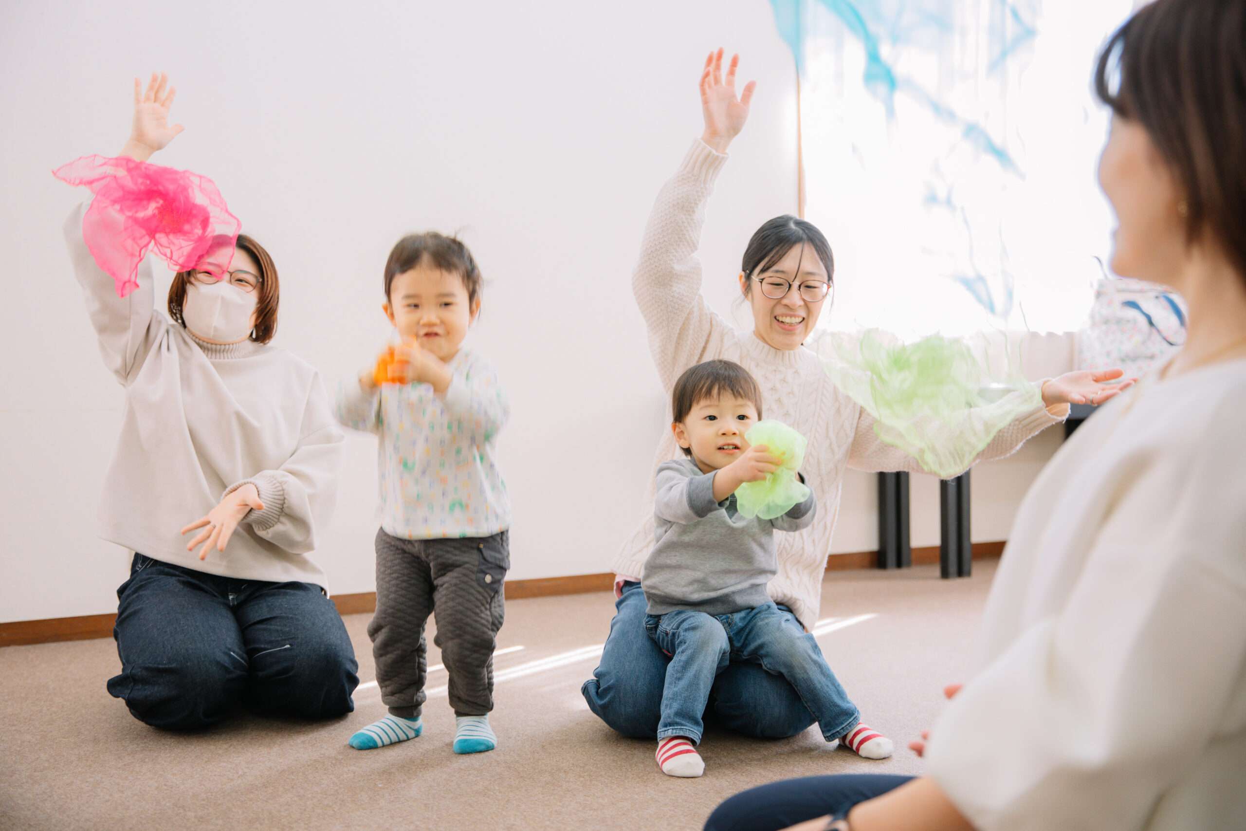 レッスンの30分だけでも、ひとりで子育てをする大変さを忘れて、講師や周りの大人たちと一緒に楽しんじゃいましょう♪